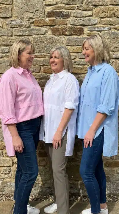 Du trägst die Everyday Cotton Blouse: lässig-weiße Baumwolle, modern gekrempelte Ärmel, kombiniert mit coolen Blue Jeans.