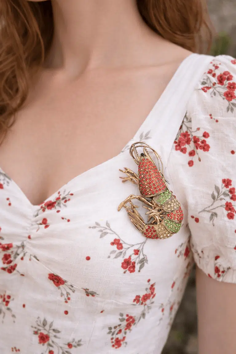 Die Turf Anstecknadel Hummerbrosche ist mit roten, grünen und goldenen Details verziert und verleiht jedem Outfit einen kühnen Stil und auffallende Eleganz.