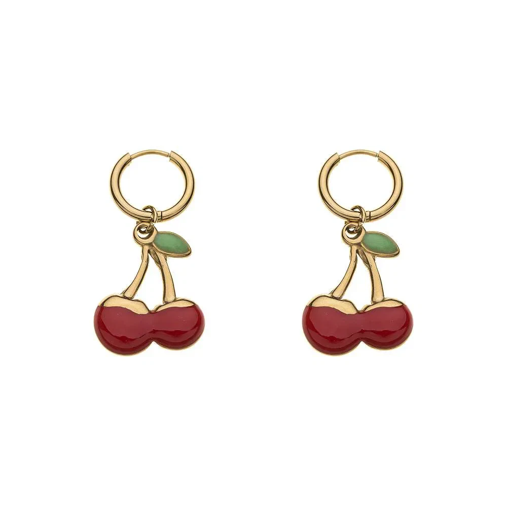 • Design: goldfarbene Creolen mit Kirsch-Motiv