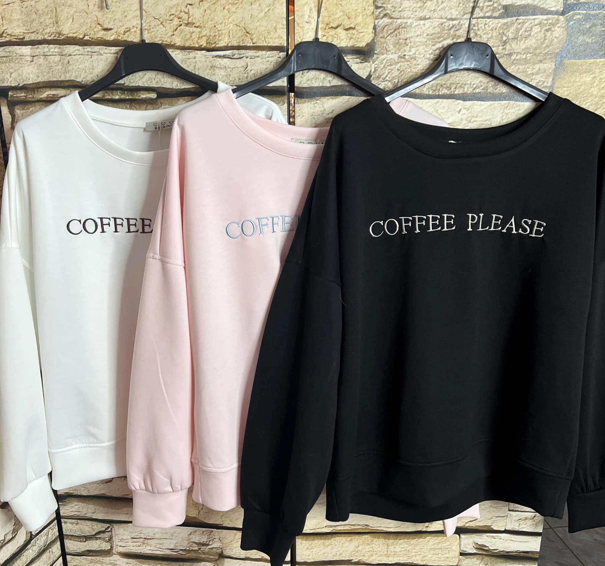 Unser gemütlicher Oversized-Sweater ist das perfekte Essential für alle Coffee-Lovers. Mit seinem minimalistischen Front-Stitching – „COFFEE PLEASE“ – setzt er ein klares Statement und lässt sich vielseitig kombinieren.