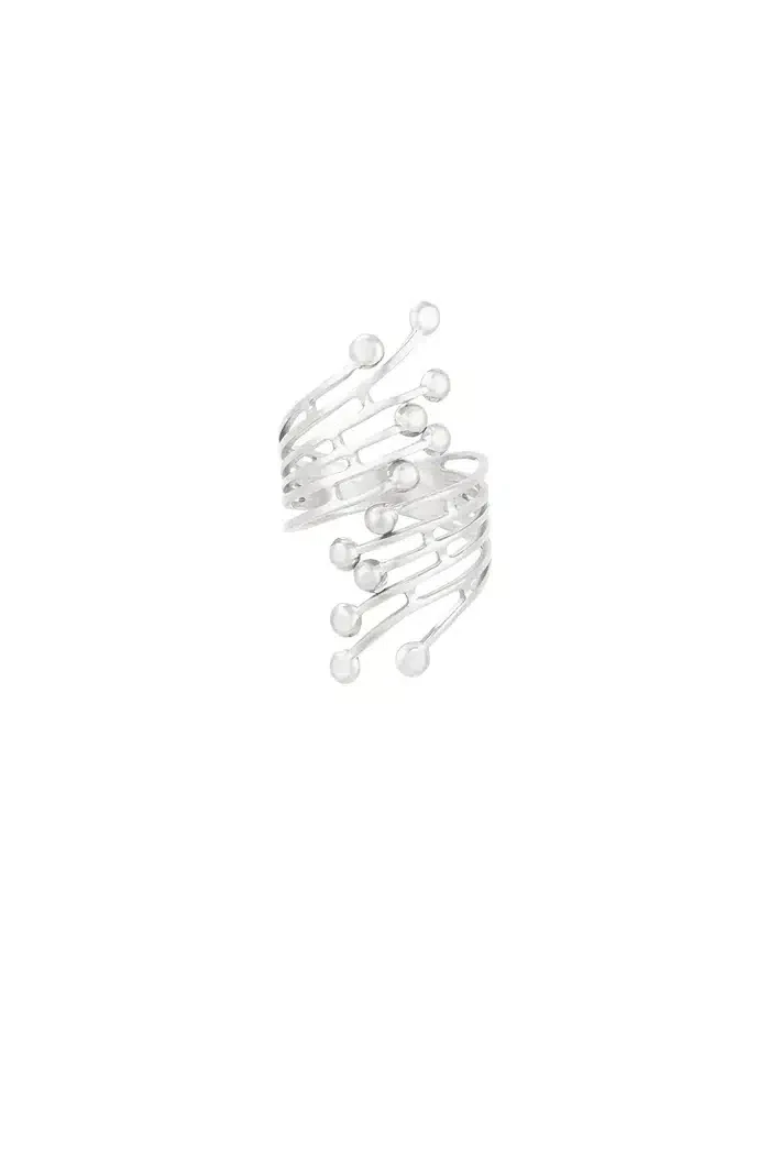 Verleihe deinem Look einen Hauch von Eleganz und Extravaganz mit diesem kunstvoll gestalteten Ring! Das moderne, offene Design aus hochwertigem,  Edelstahl erinnert an zarte Linien, die wie kleine Zweige mit dezenten Kugel-Akzenten nach oben verlaufen. Dieses filigrane Detail verleiht dem Ring eine einzigartige, organische Ausstrahlung.