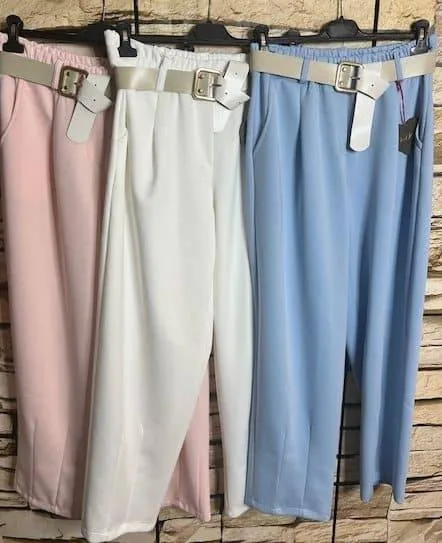 Diese moderne Stoffhose überzeugt durch ihre klare Silhouette und ihren zeitlosen, eleganten Look. Der schmal geschnittene Beinverlauf sorgt für eine feminine Linie, während die hochwertige Verarbeitung einen hohen Tragekomfort garantiert. Dank des elastischen Bundes mit dekorativem Gürtel passt sich die Hose angenehm an und sitzt sowohl im Alltag als auch im Büro perfekt.