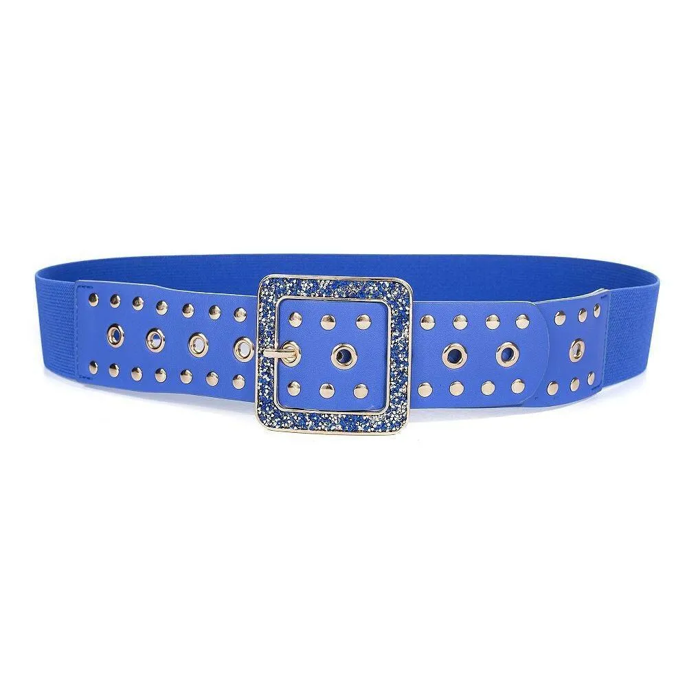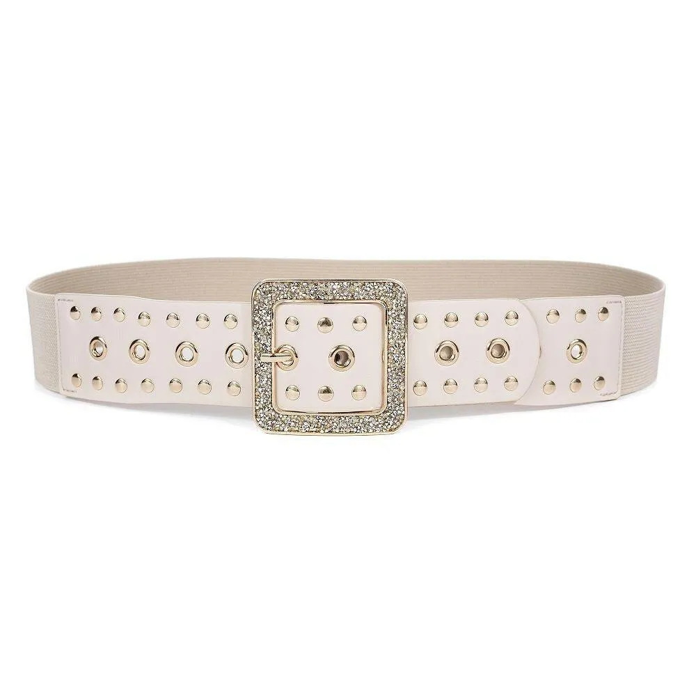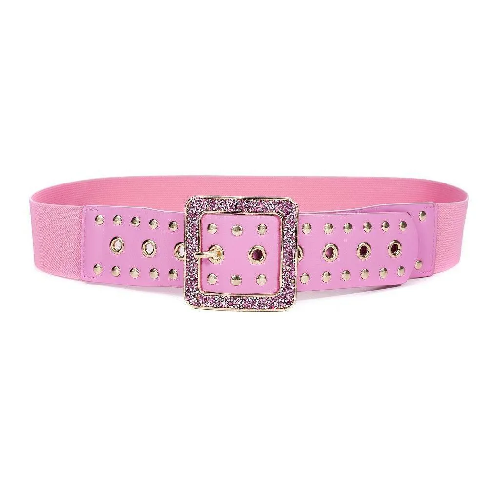 Dieser trendige Stretchgürtel ist das perfekte Accessoire für stilbewusste Looks mit Wow-Effekt. Die breite Form betont die Taille und sorgt für eine feminine Silhouette, während die funkelnde Schließe mit Nieten-Details ein echtes Fashion-Statement setzt.