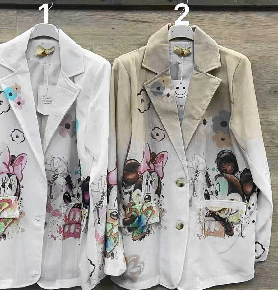 Das Highlight ist das künstlerische Cartoon-Design mit farbigen Akzenten, das dem Blazer einen einzigartigen Look verleiht und garantiert alle Blicke auf sich zieht. Die aufgesetzten Taschen, das Reverskragen-Design und die Knopfleiste sorgen dabei für den typischen Blazer-Style – nur eben mit besonderem Twist.