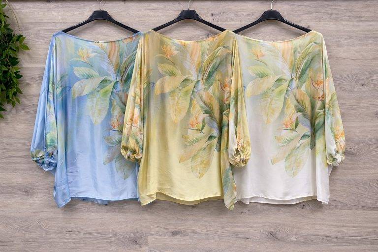Elegante und luftige Damenbluse mit wunderschönem Tropical-Blumenprint.