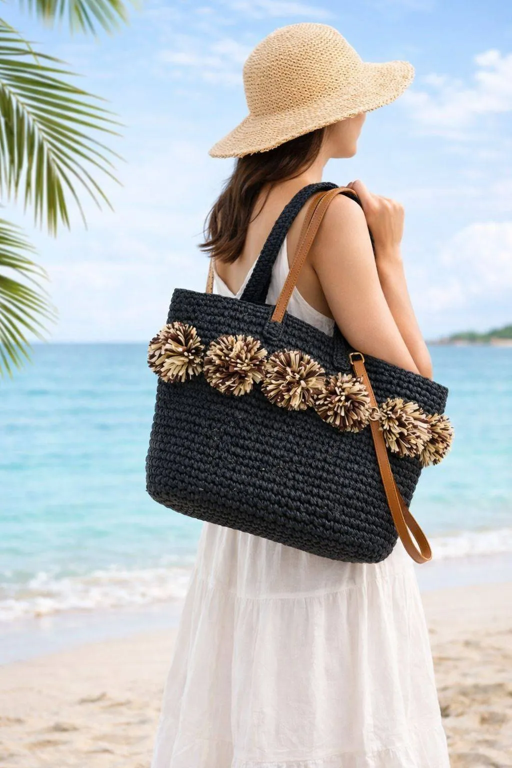 Diese stilvolle Basttasche ist der perfekte Begleiter für sonnige Tage. Mit ihrem natürlichen Flechtdesign und den dekorativen Pompons verleiht sie jedem Outfit eine sommerliche und feminine Note. Ob für den Strand, den Stadtbummel oder den Urlaub – diese Tasche verbindet modisches Design mit praktischer Funktionalität.