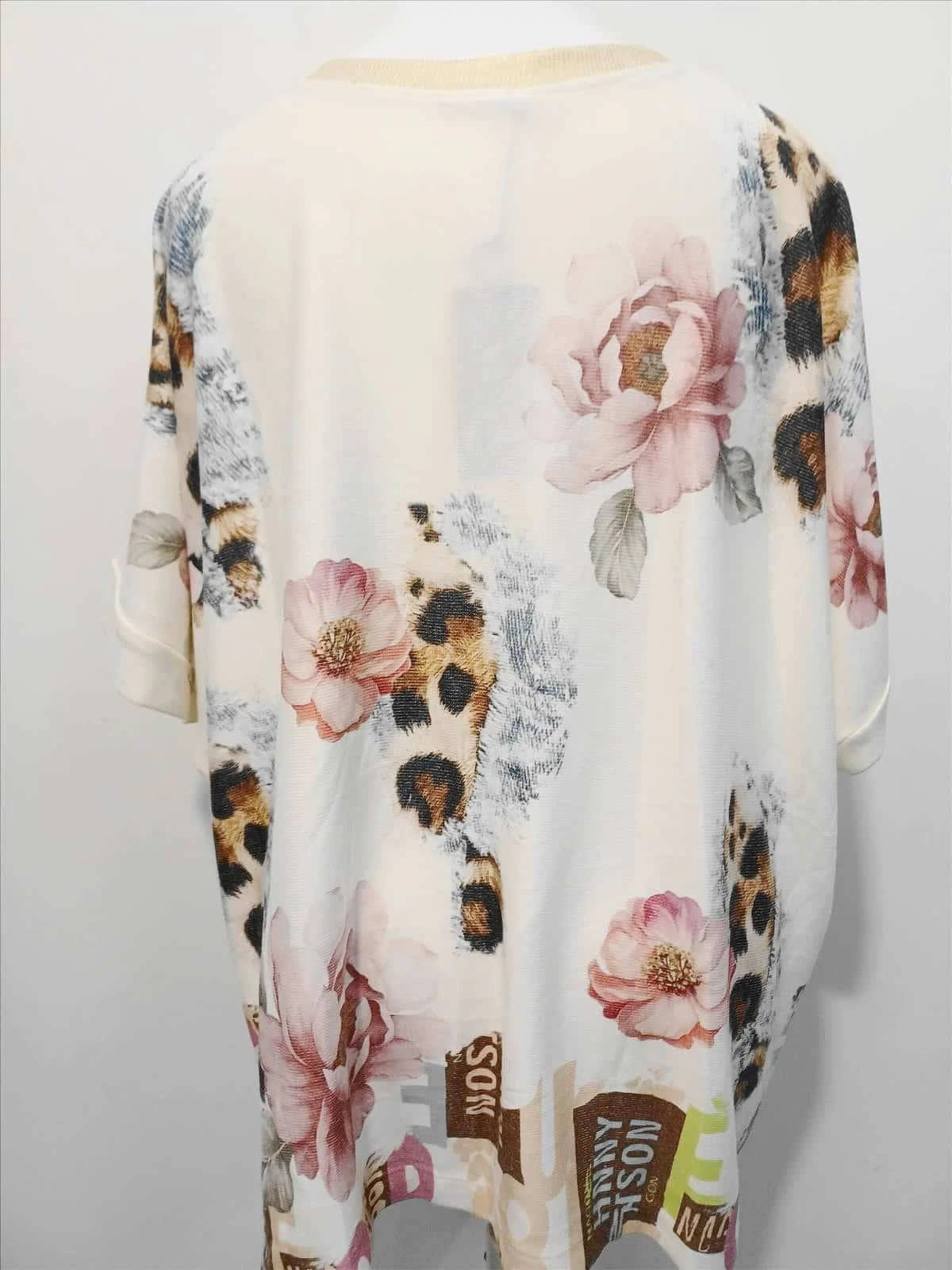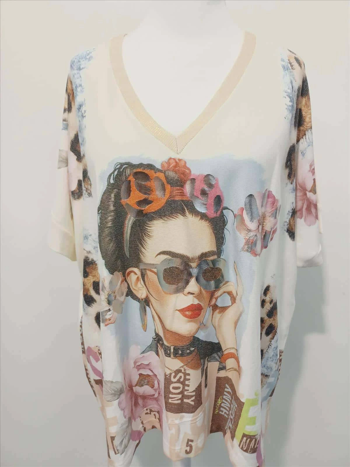 Der lässige, locker fallende Schnitt sorgt für ein angenehmes Tragegefühl und umspielt sanft die Figur. Der feminine V-Ausschnitt und die überschnittenen Ärmel unterstreichen die entspannte Silhouette und machen das Shirt zum perfekten Begleiter für stilvolle Casual-Looks.