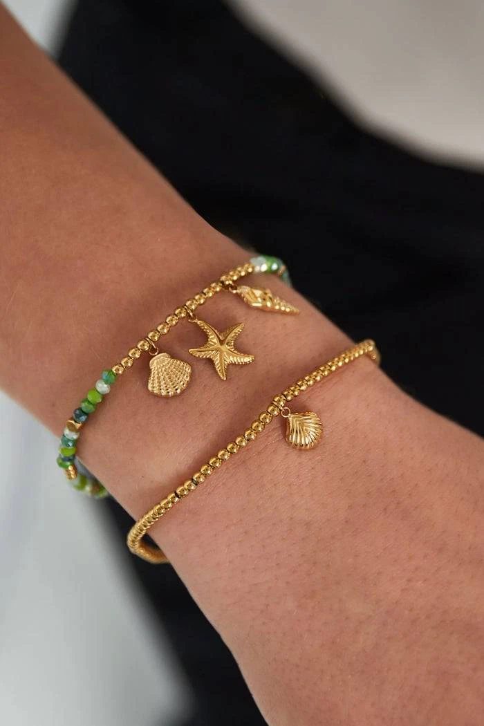 Bringe das Flair des Meeres direkt an dein Handgelenk mit diesem traumhaften Armband aus vergoldetem Edelstahl! Die feinen, farbenfrohen Perlen in leuchtenden Pink- und Orangetönen verleihen dem Schmuckstück eine frische, sommerliche Ausstrahlung. Die detailreichen Muschel- und Seestern-Anhänger sorgen für ein maritimes Urlaubsgefühl, während eine zarte Süßwasserperle und ein funkelnder Zirkonstein das Design abrunden.