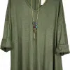 Dieses locker fallende Shirt ist ein wahres Allroundtalent für Ihren Kleiderschrank. Der feminine V-Ausschnitt und die lässig krempelbaren Ärmel verleihen dem Oberteil eine moderne Note. Dank des hochwertigen Materialmixes trägt es sich besonders angenehm und sorgt für ein bequemes Tragegefühl – egal ob im Alltag oder kombiniert für einen eleganteren Look.