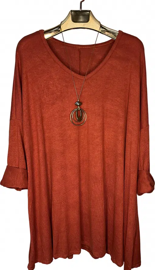Mit dem braunen "LanaMix"-Langarmshirt mit lässig gekrempelten Ärmeln und Kettenanhänger strahlst du Komfort & Style aus.