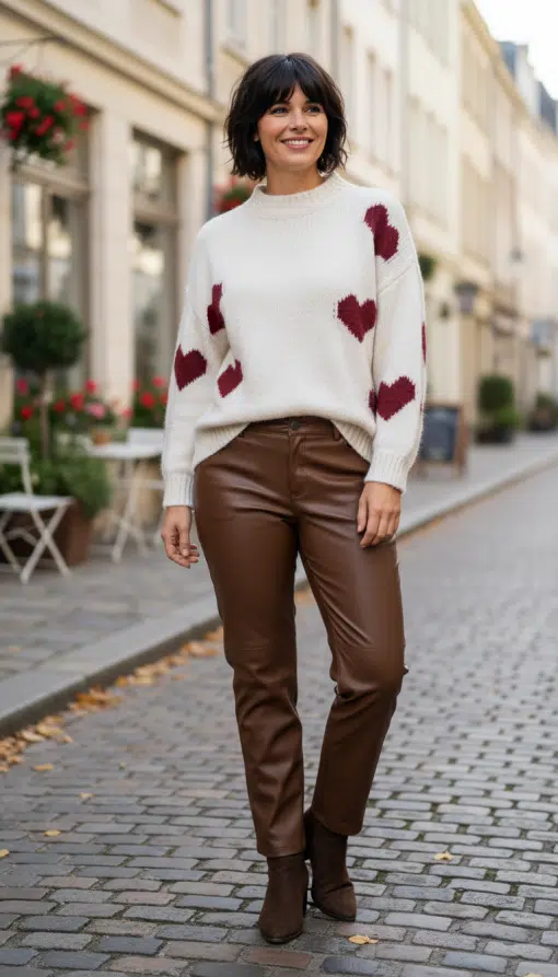Kombiniere den Pullover zu Jeans oder Lederhose für einen modernen, gemütlichen Look – ideal für den Alltag oder einen entspannten Stadtbummel.