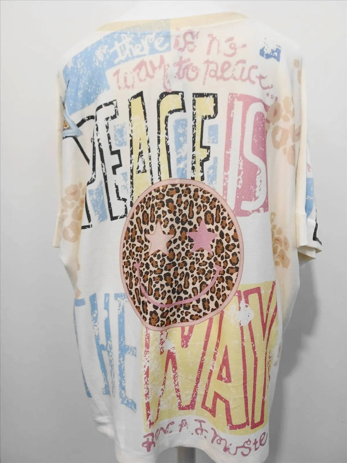Dieses ausdrucksstarke Shirt begeistert durch seinen künstlerischen Allover-Print, der Vorder- und Rückseite gleichermaßen in Szene setzt. Die Mischung aus grafischen Elementen, Schriftzügen und dezenten Glanzeffekten verleiht dem Design einen individuellen, modischen Charakter.